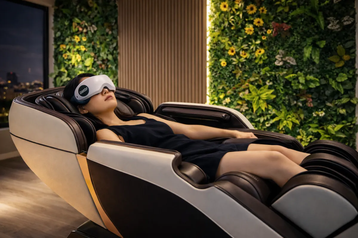 La experiencia se complementa con el dispositivo Trigeminus, que entrega una estimulación suave y controlada a nivel facial, ayudando al cerebro a reducir la alerta excesiva y a activar los mecanismos naturales de calma y recuperación del organismo.